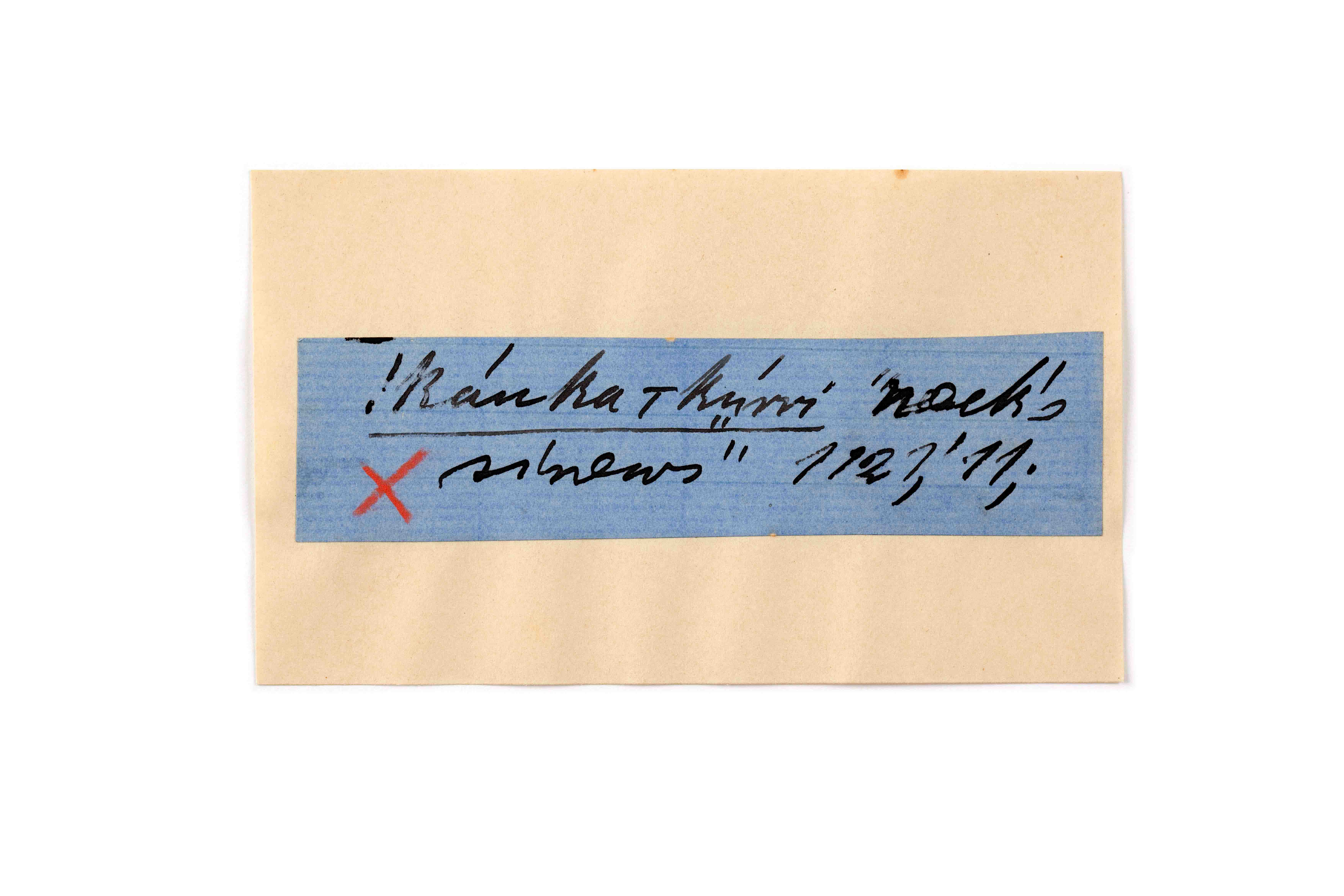 ink on blue paper glued on card