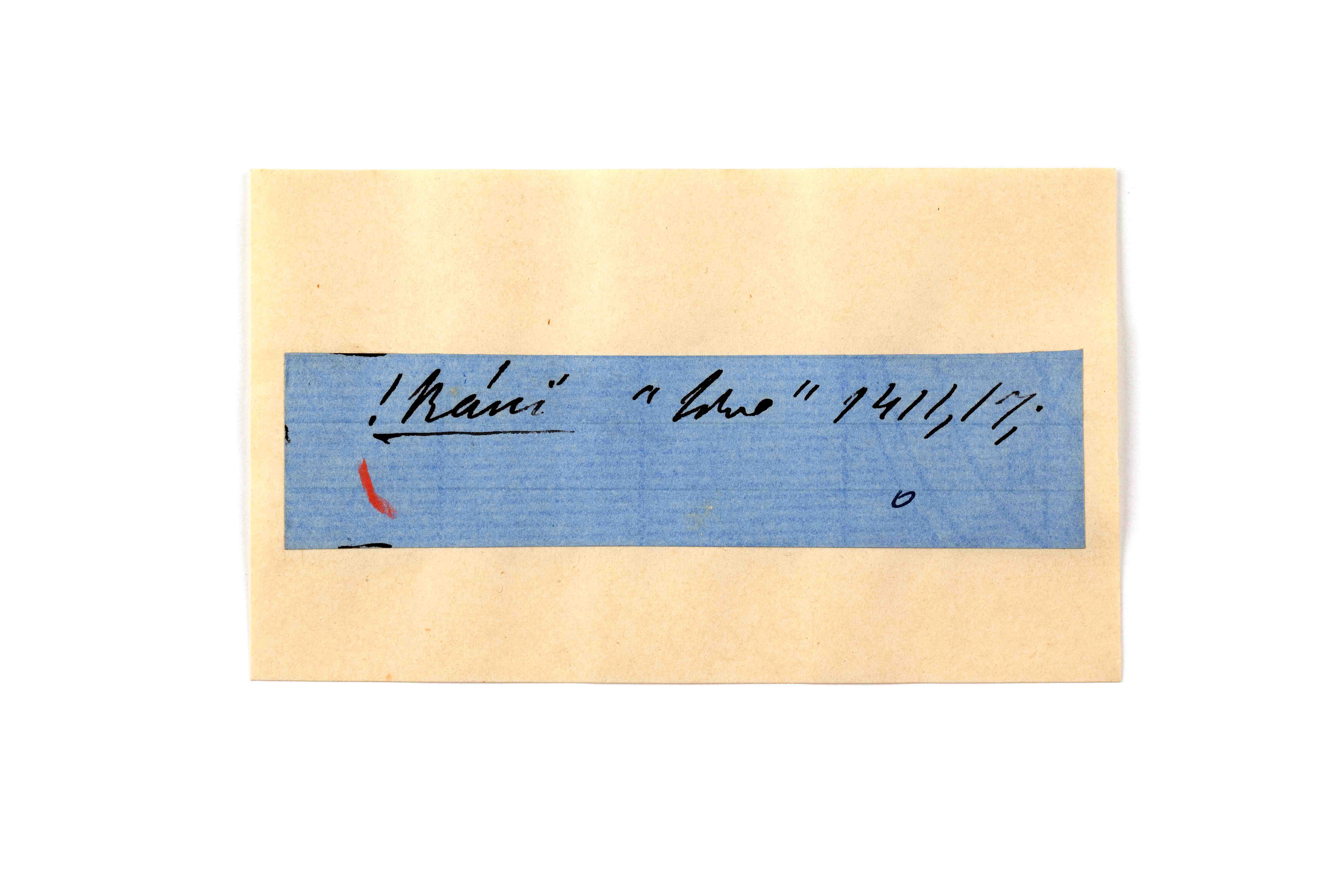 ink on blue paper glued on card