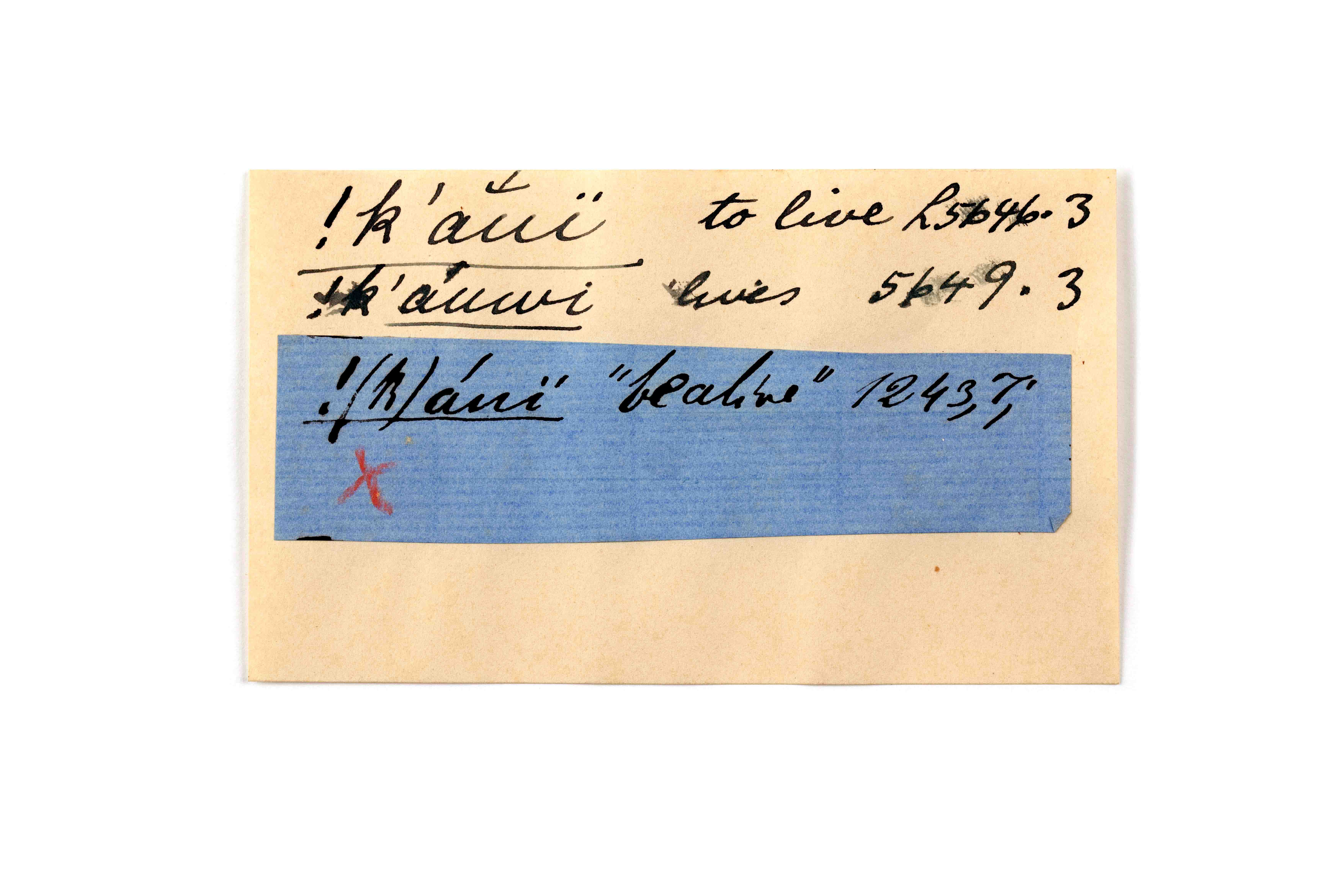 ink on blue paper glued on card