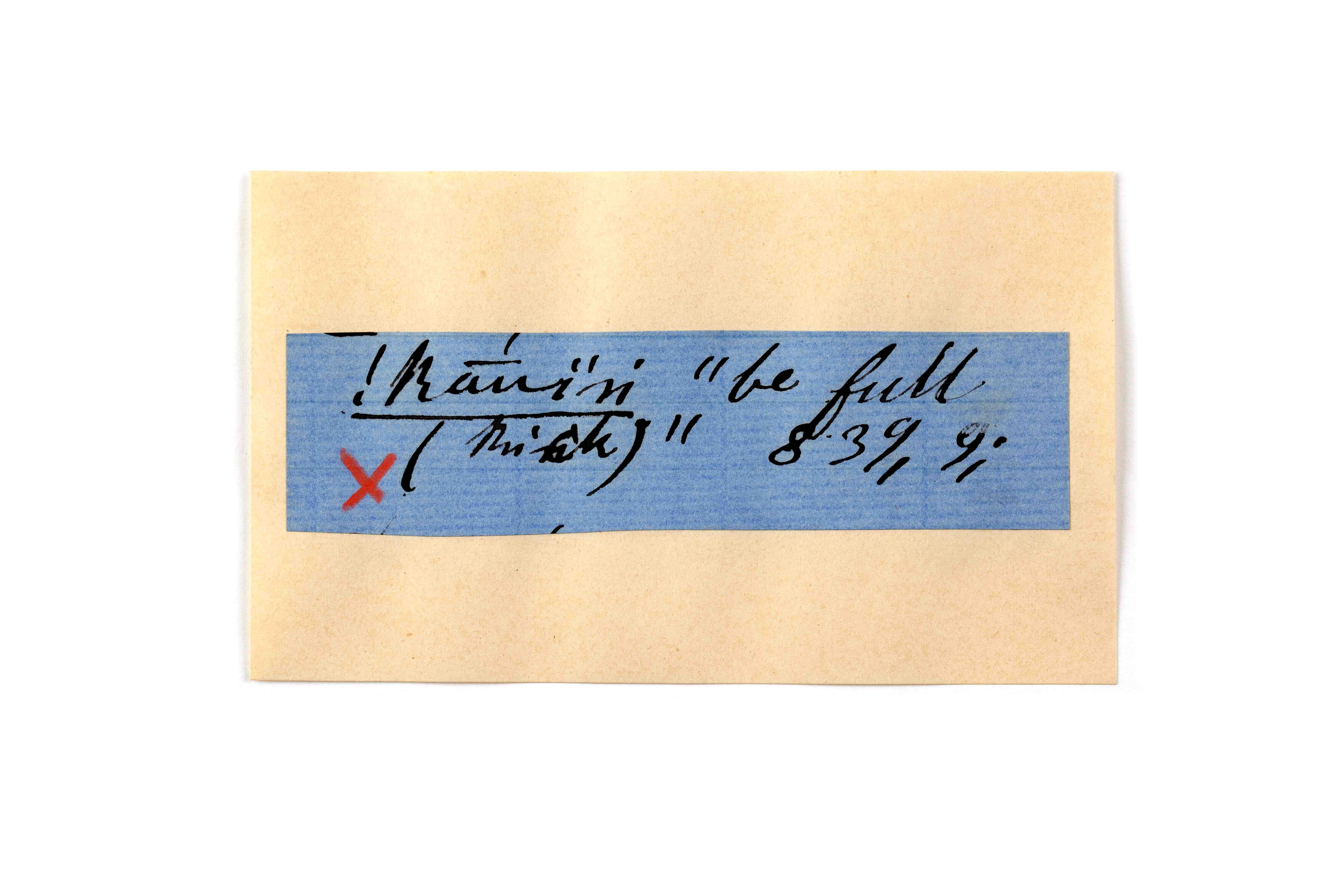ink on blue paper glued on card