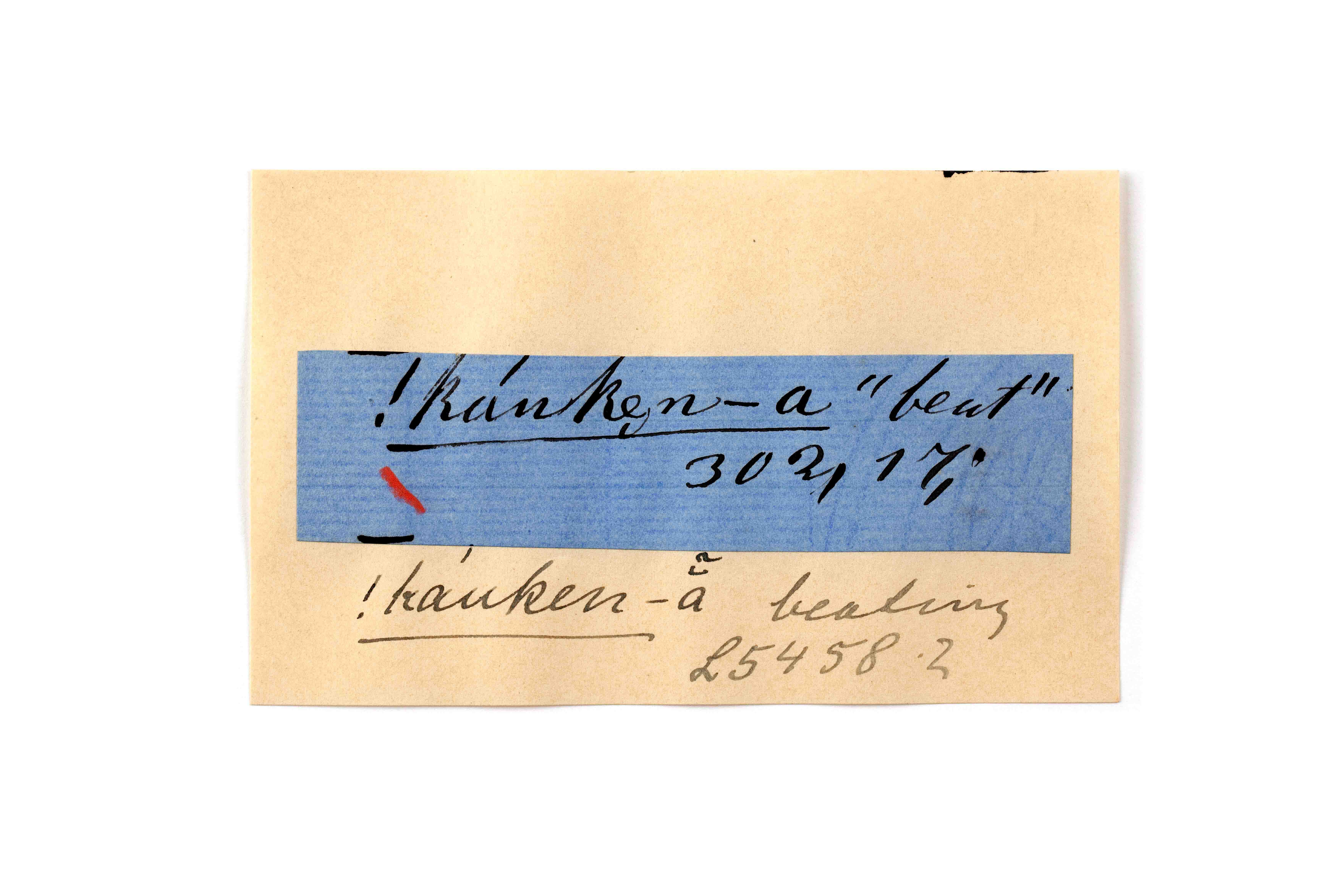ink on blue paper glued on card