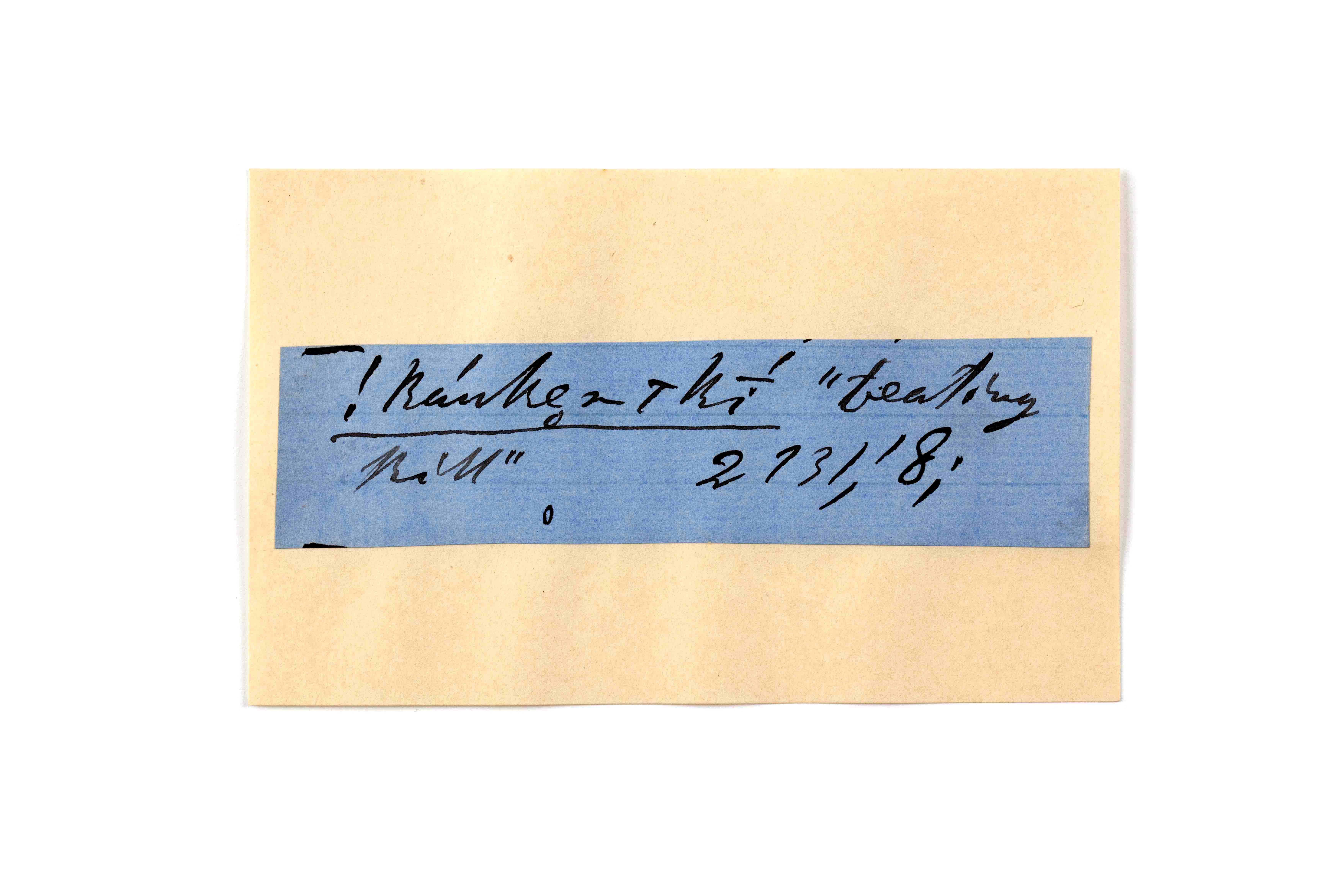 ink on blue paper glued on card