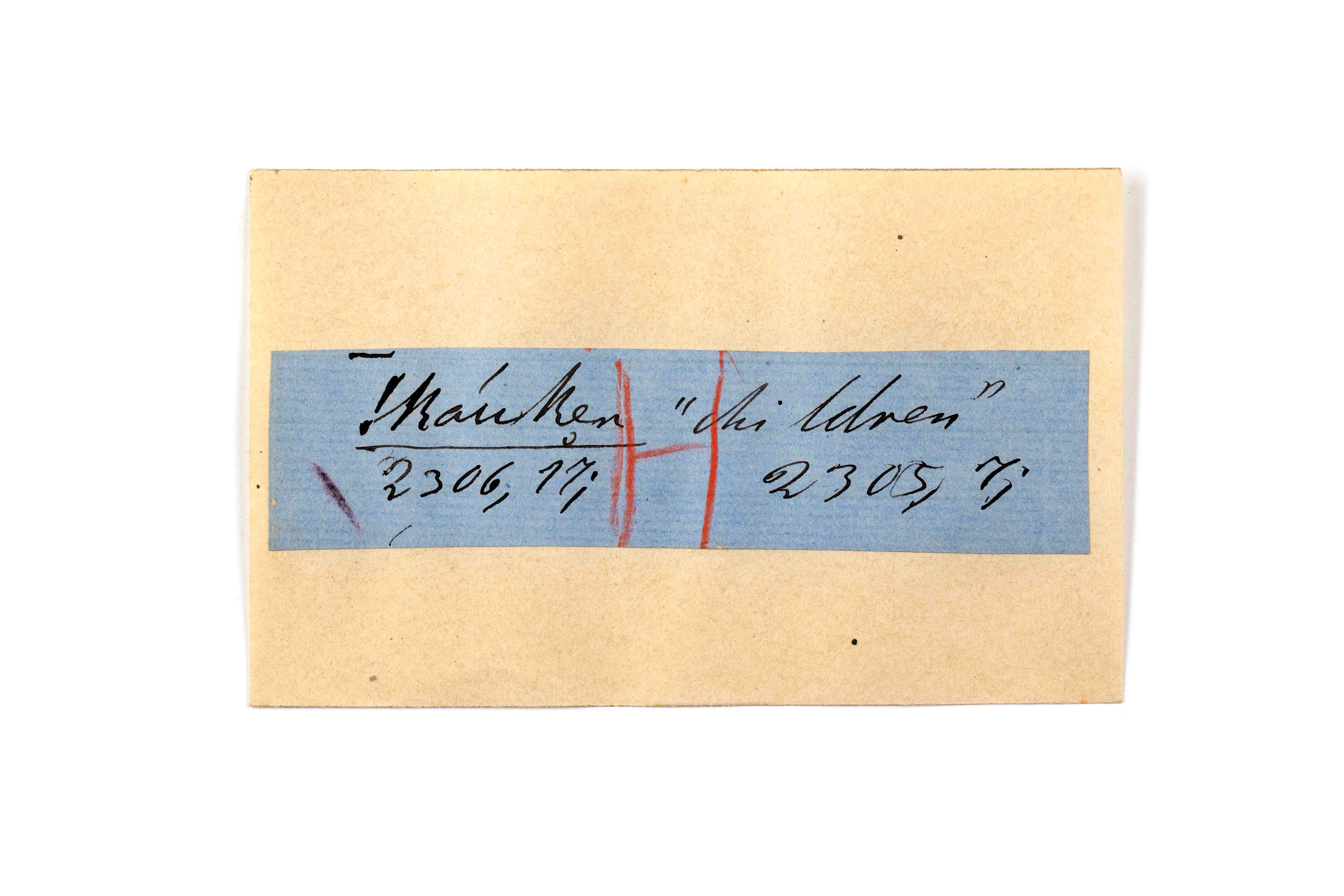ink on blue paper glued on card