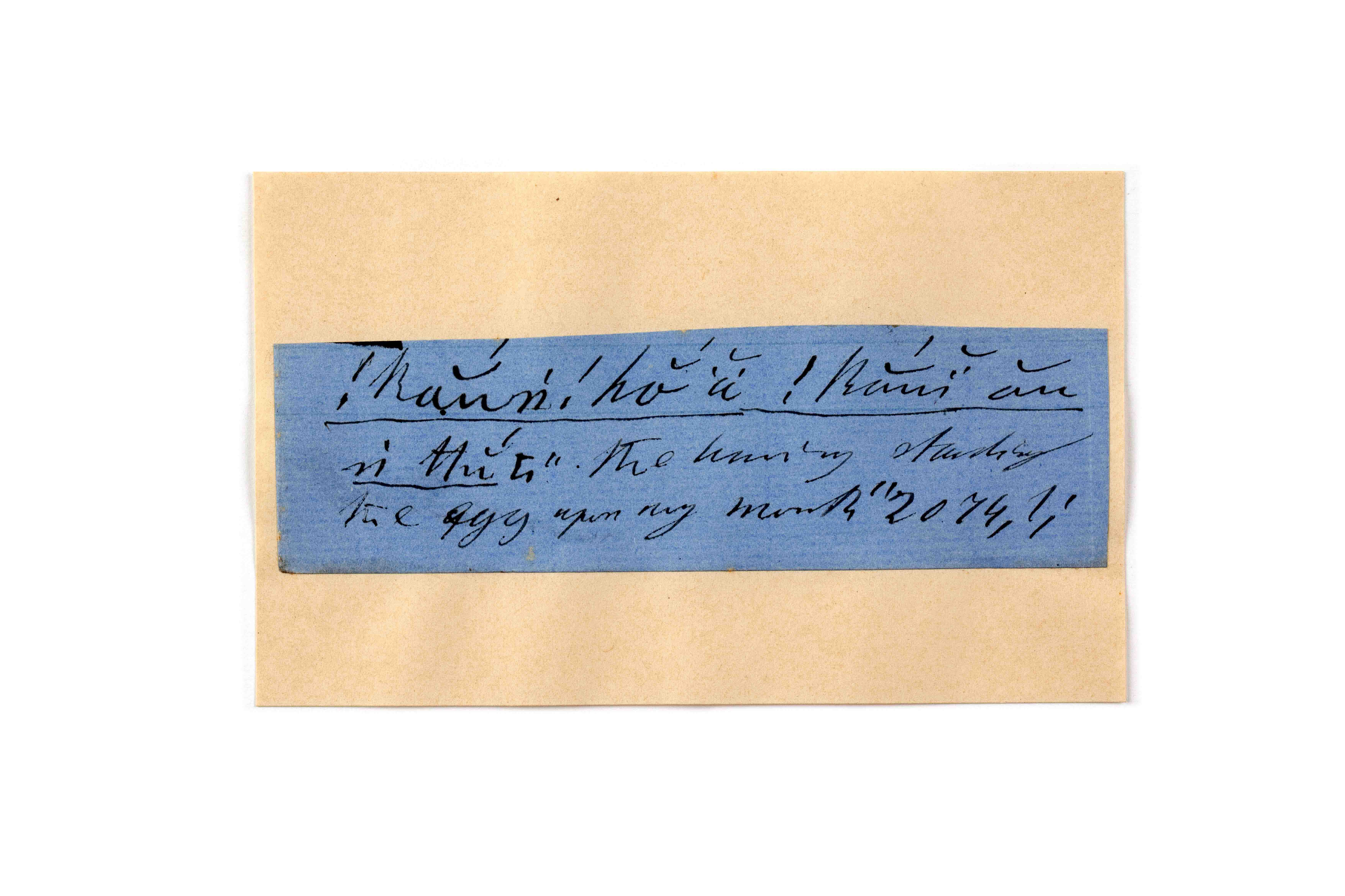 ink on blue paper glued on card