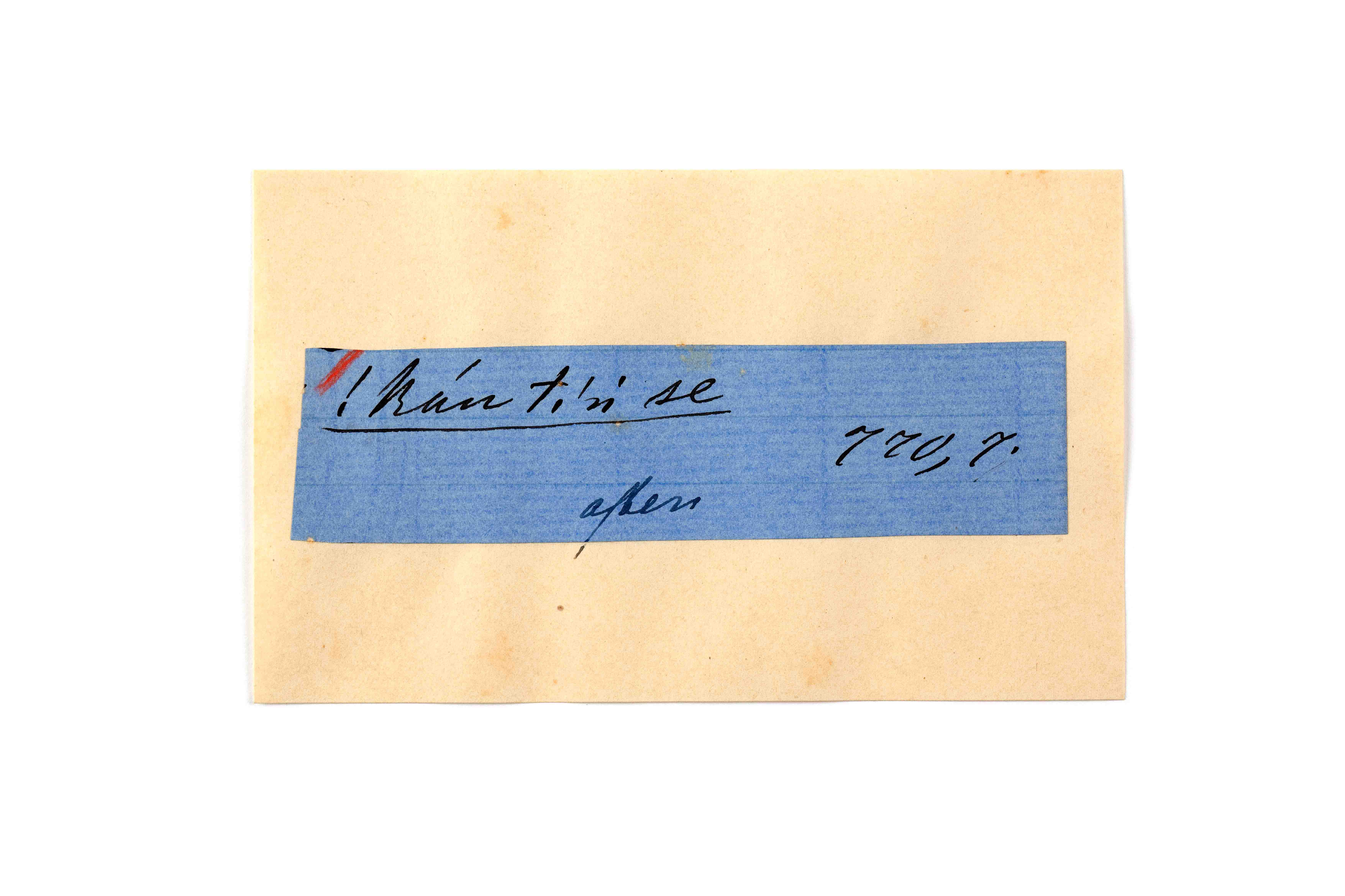 ink on blue paper glued on card