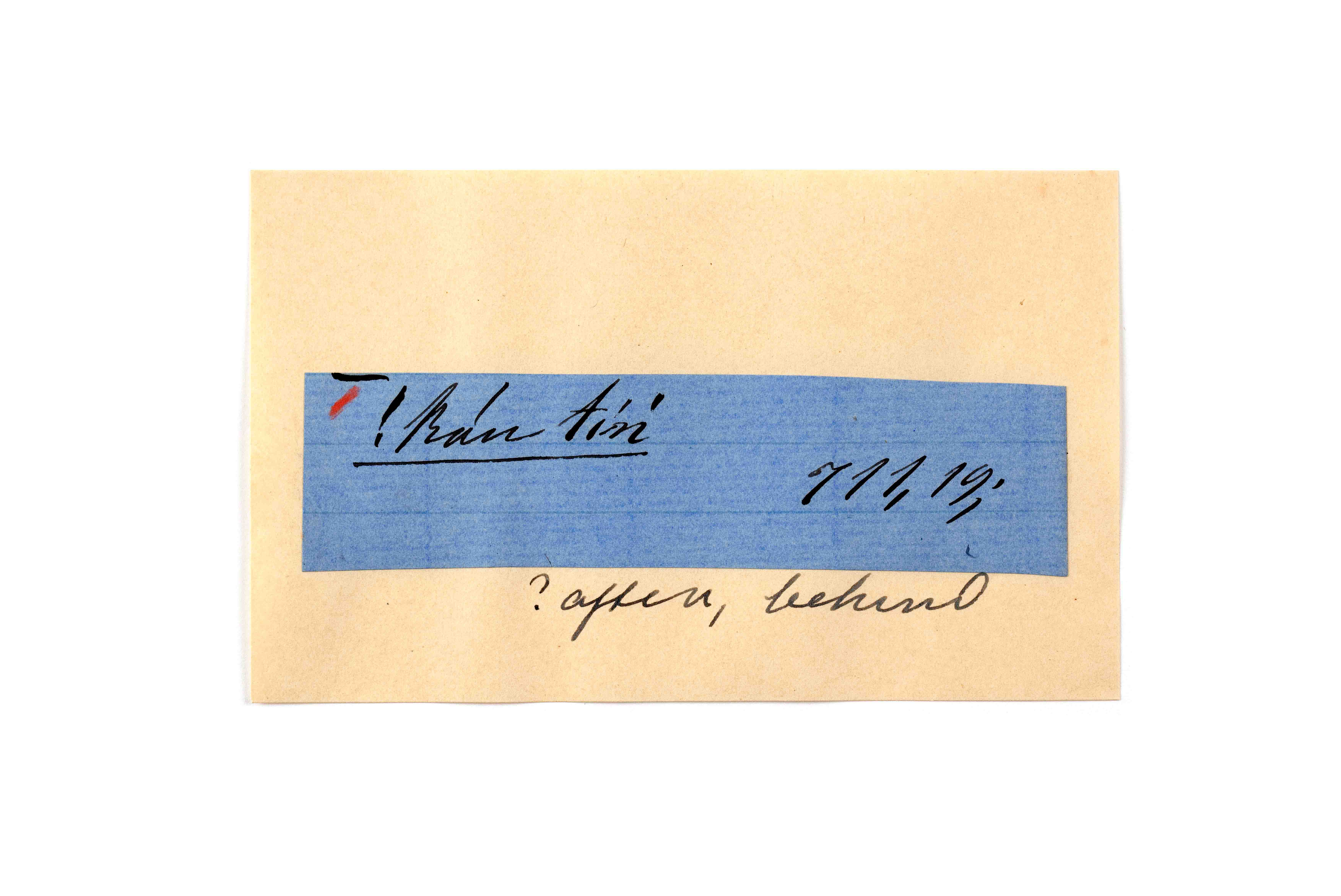 ink on blue paper glued on card