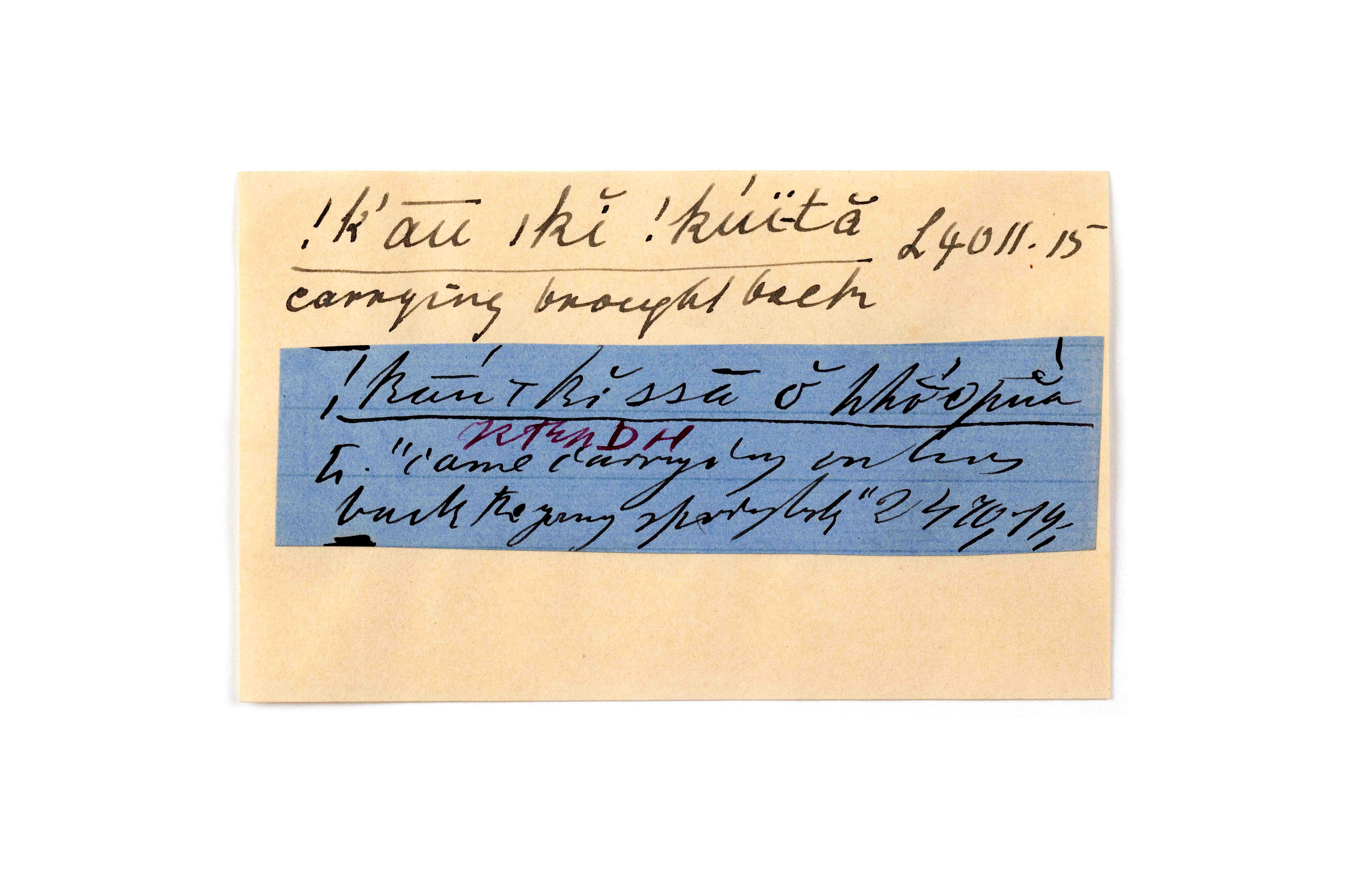 ink on blue paper glued on card