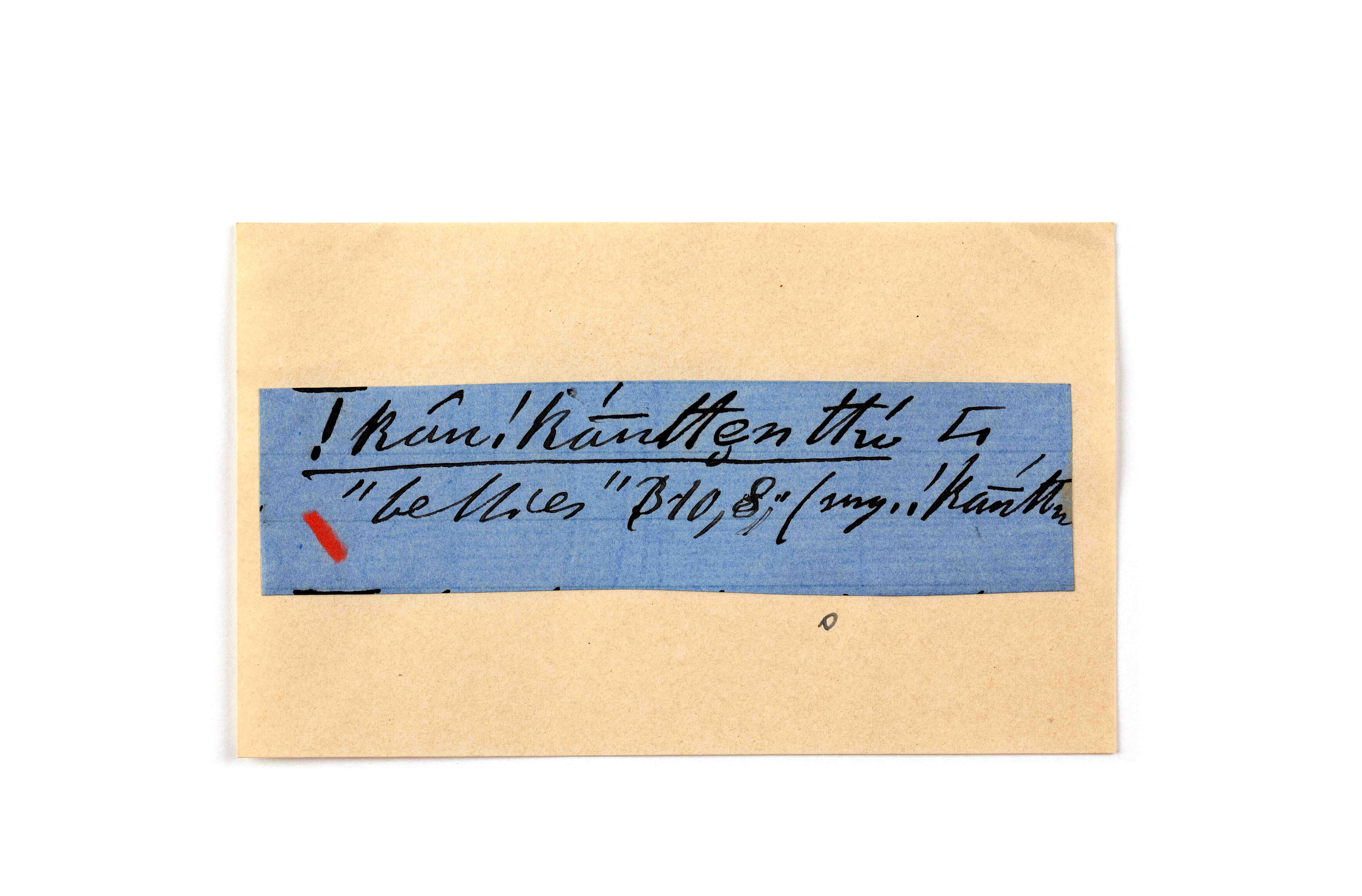 ink on blue paper glued on card