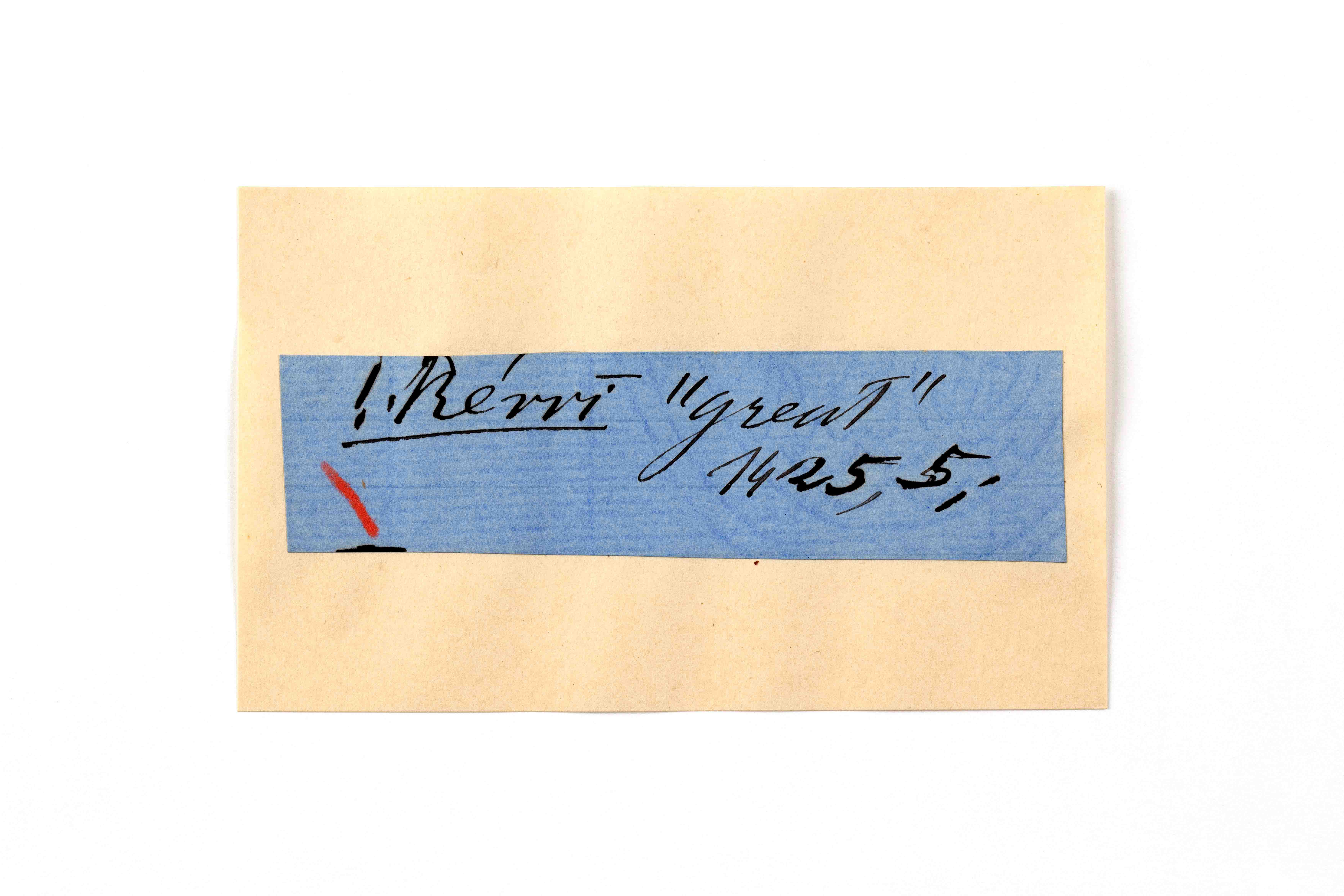 ink on blue paper glued on card