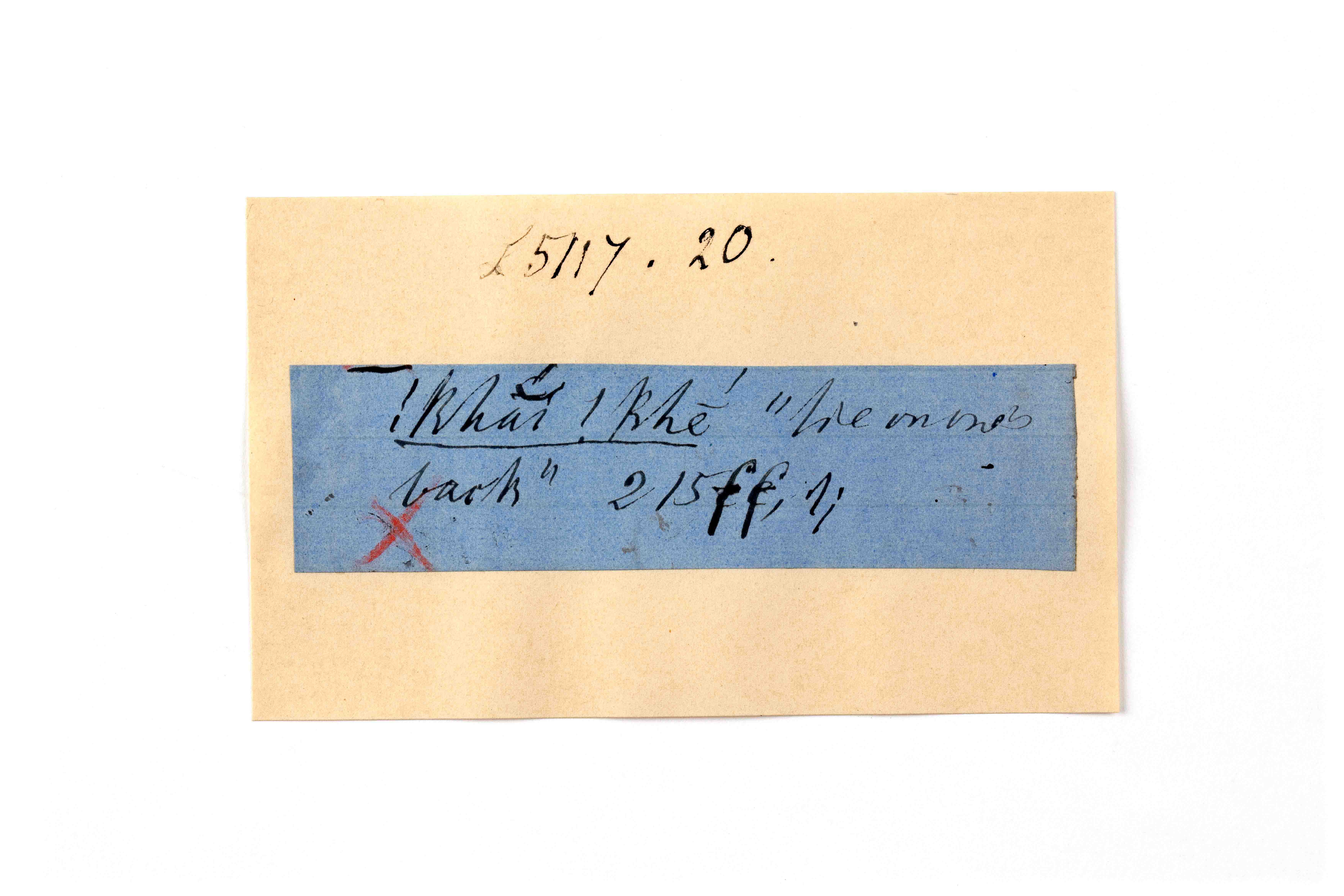 ink on blue paper glued on card
