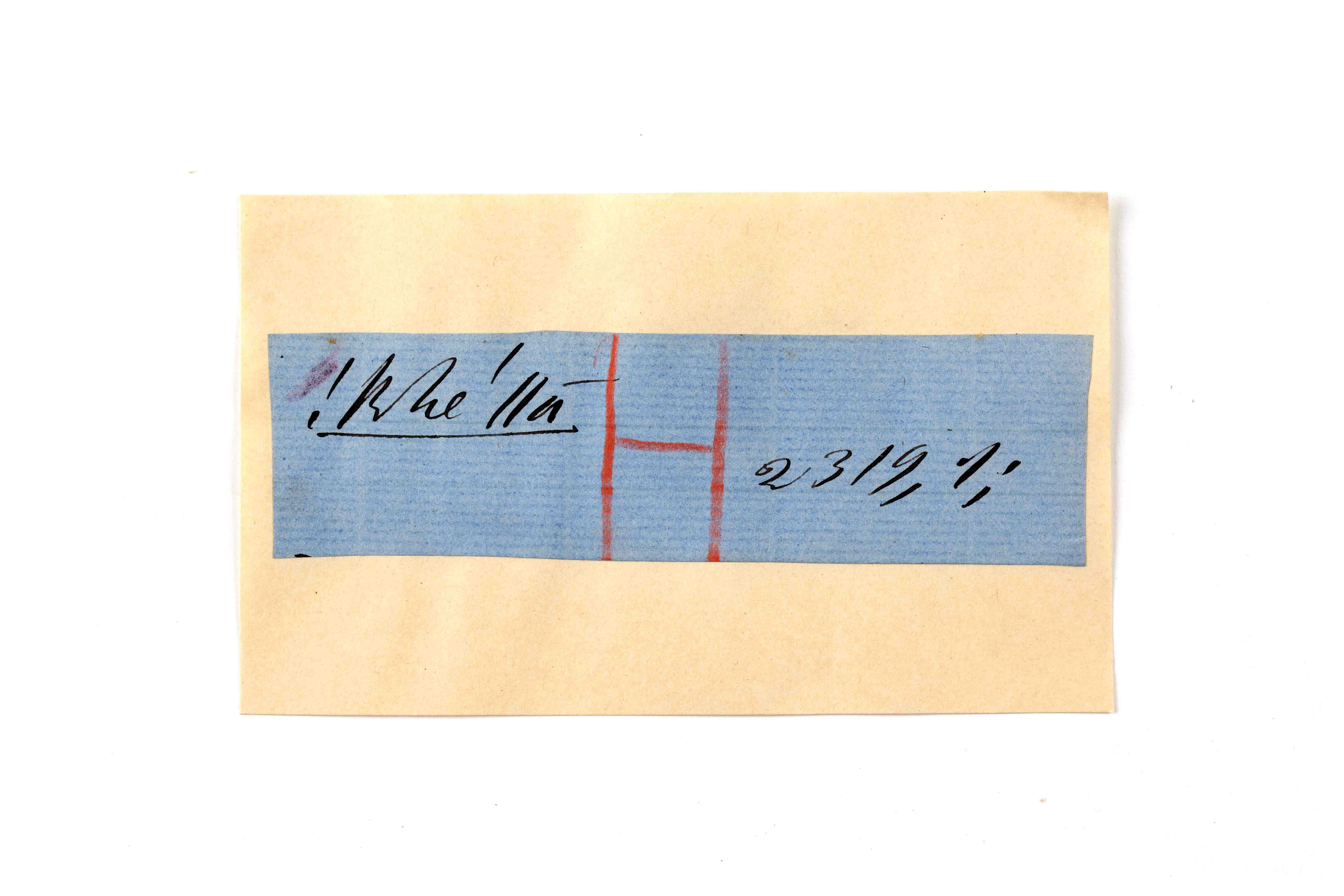 ink on blue paper glued on card