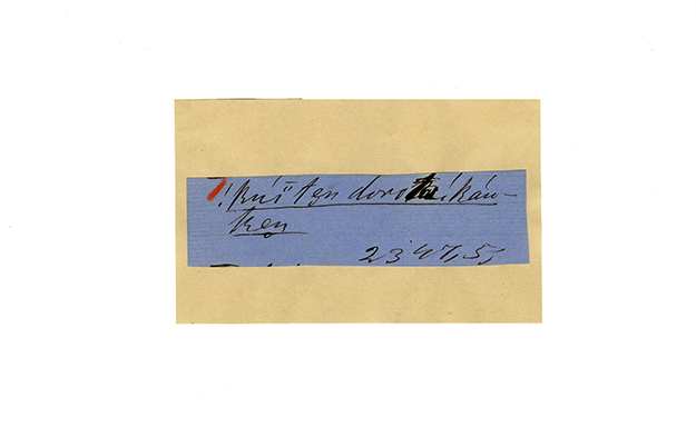 ink on blue paper glued on card