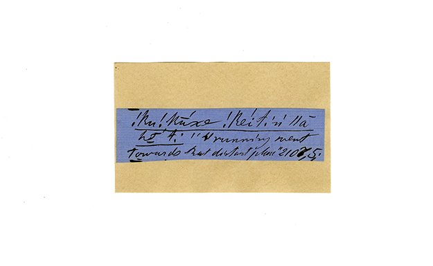 ink on blue paper glued on card