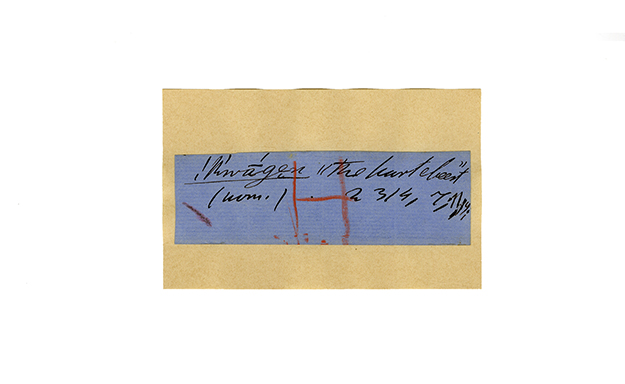 ink on blue paper glued on card