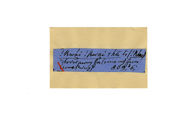 ink on blue paper glued on card