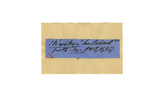 ink on blue paper glued on card