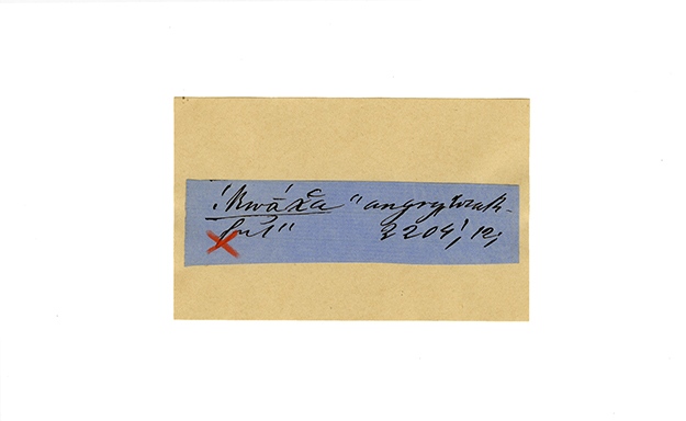 ink on blue paper glued on card