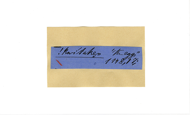ink on blue paper glued on card