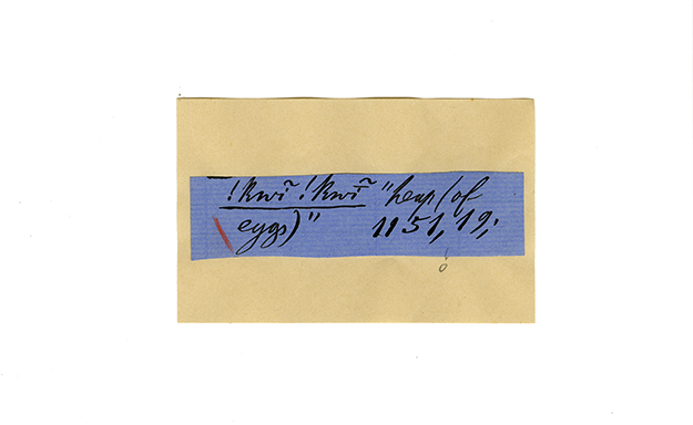 ink on blue paper glued on card