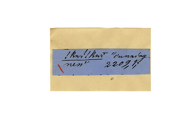 ink on blue paper glued on card