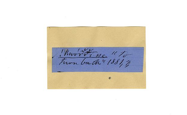 ink on blue paper glued on card
