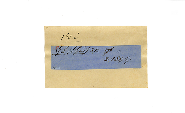 ink on blue paper glued on card