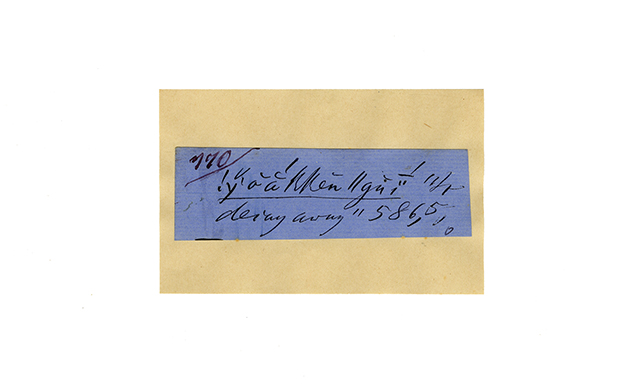 ink on blue paper glued on card