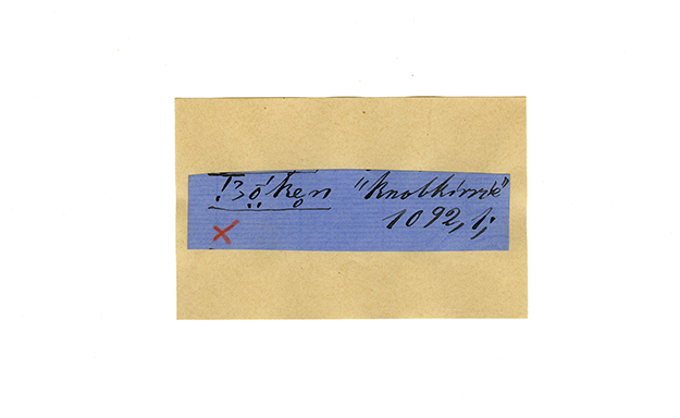 ink on blue paper glued on card