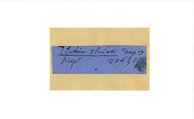 ink on blue paper glued on card