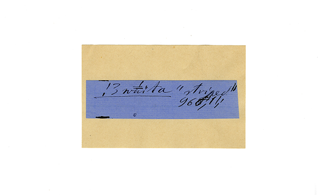 ink on blue paper glued on card