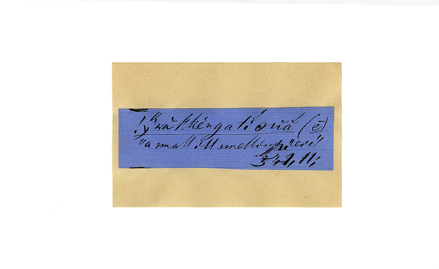 ink on blue paper glued on card