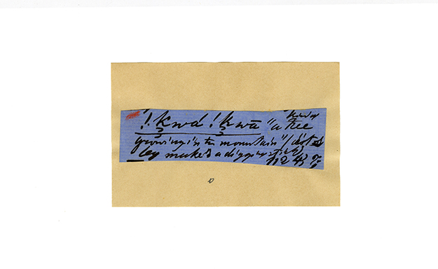 ink on blue paper glued on card