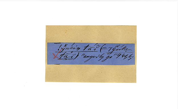 ink on blue paper glued on card
