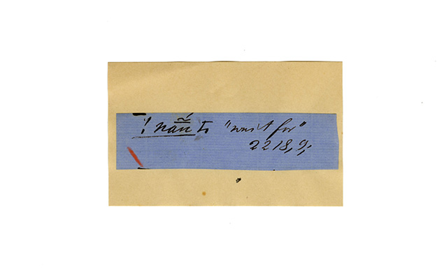 ink on blue paper glued on card