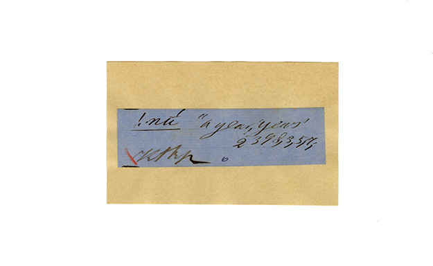 ink on blue paper glued on card