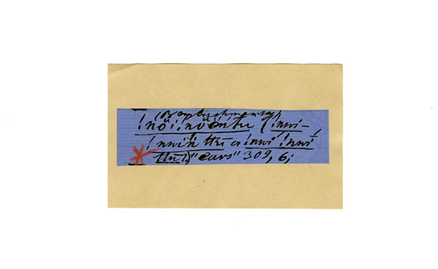 ink on blue paper glued on card