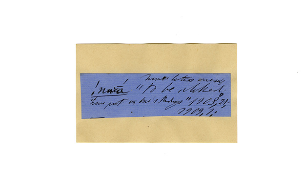 ink on blue paper glued on card
