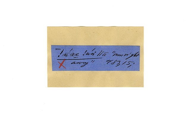 ink on blue paper glued on card