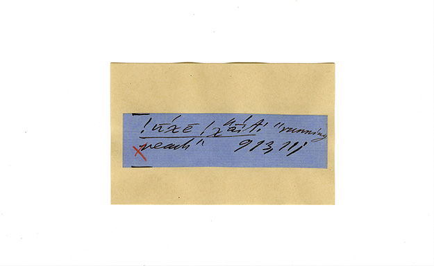 ink on blue paper glued on card