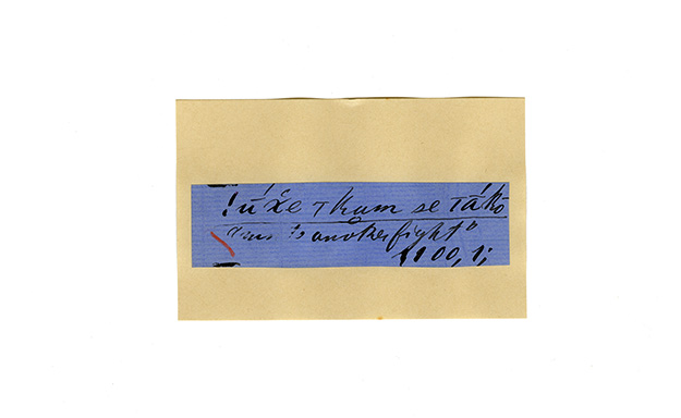 ink on blue paper glued on card