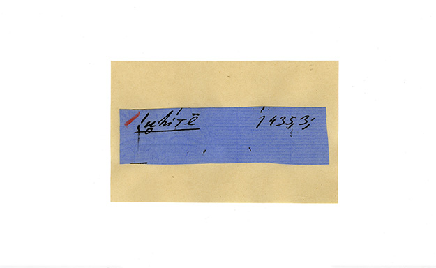 ink on blue paper glued on card