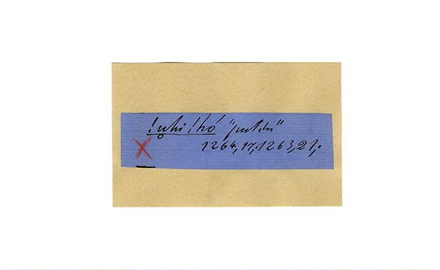 ink on blue paper glued on card