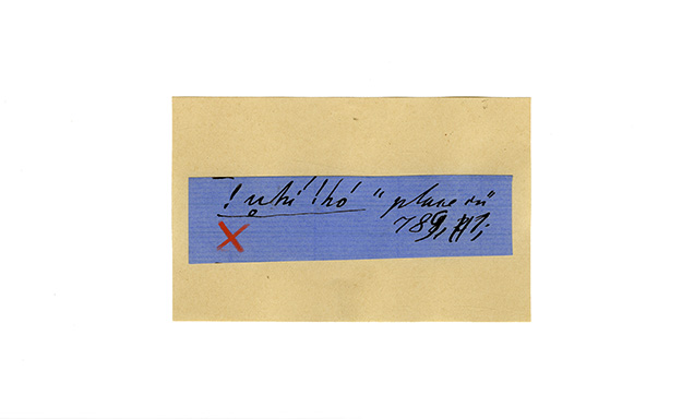ink on blue paper glued on card