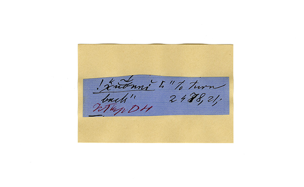 ink on blue paper glued on card