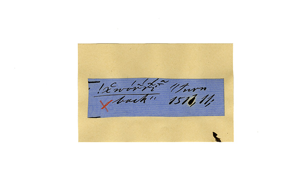 ink on blue paper glued on card