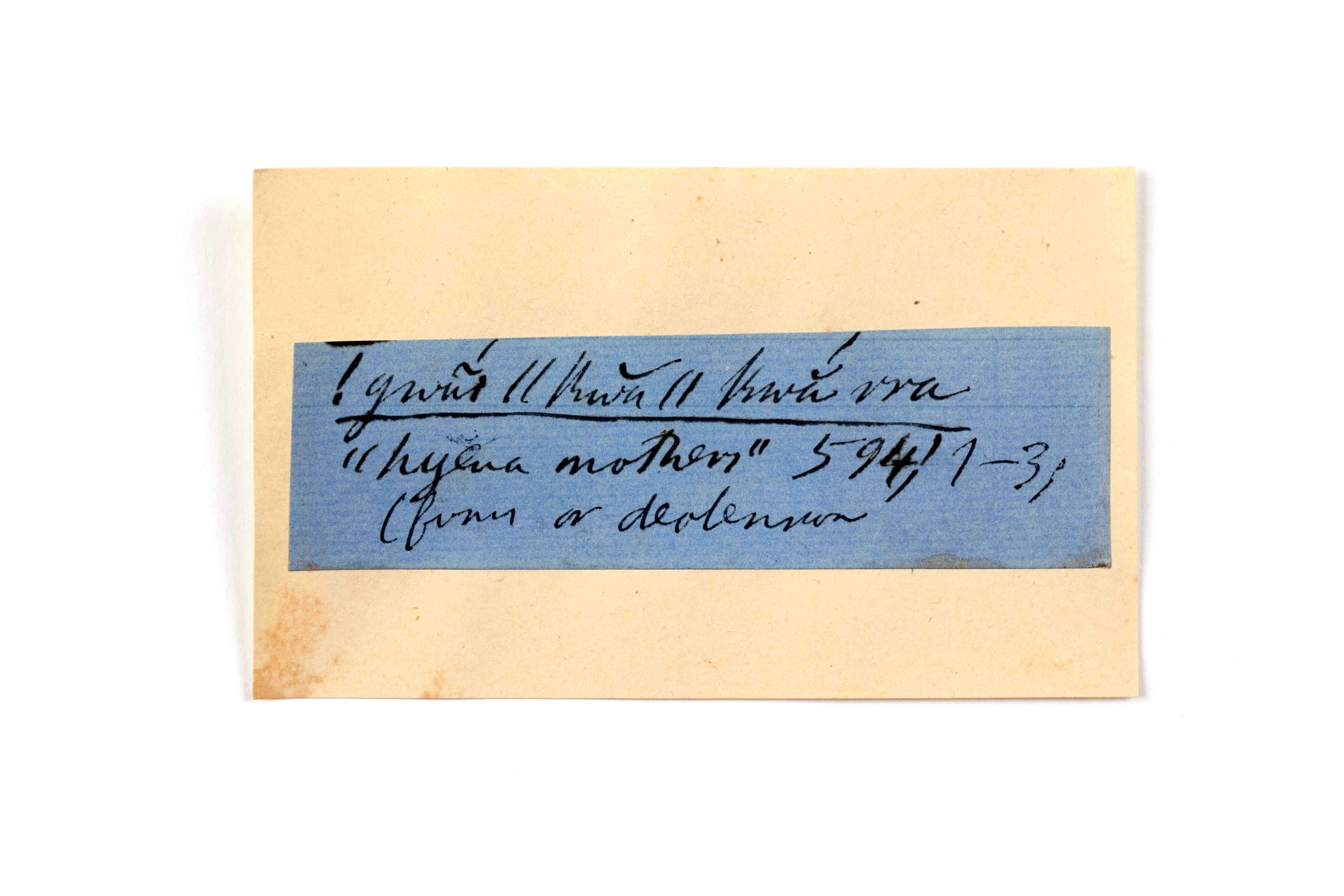 ink on blue paper glued on card