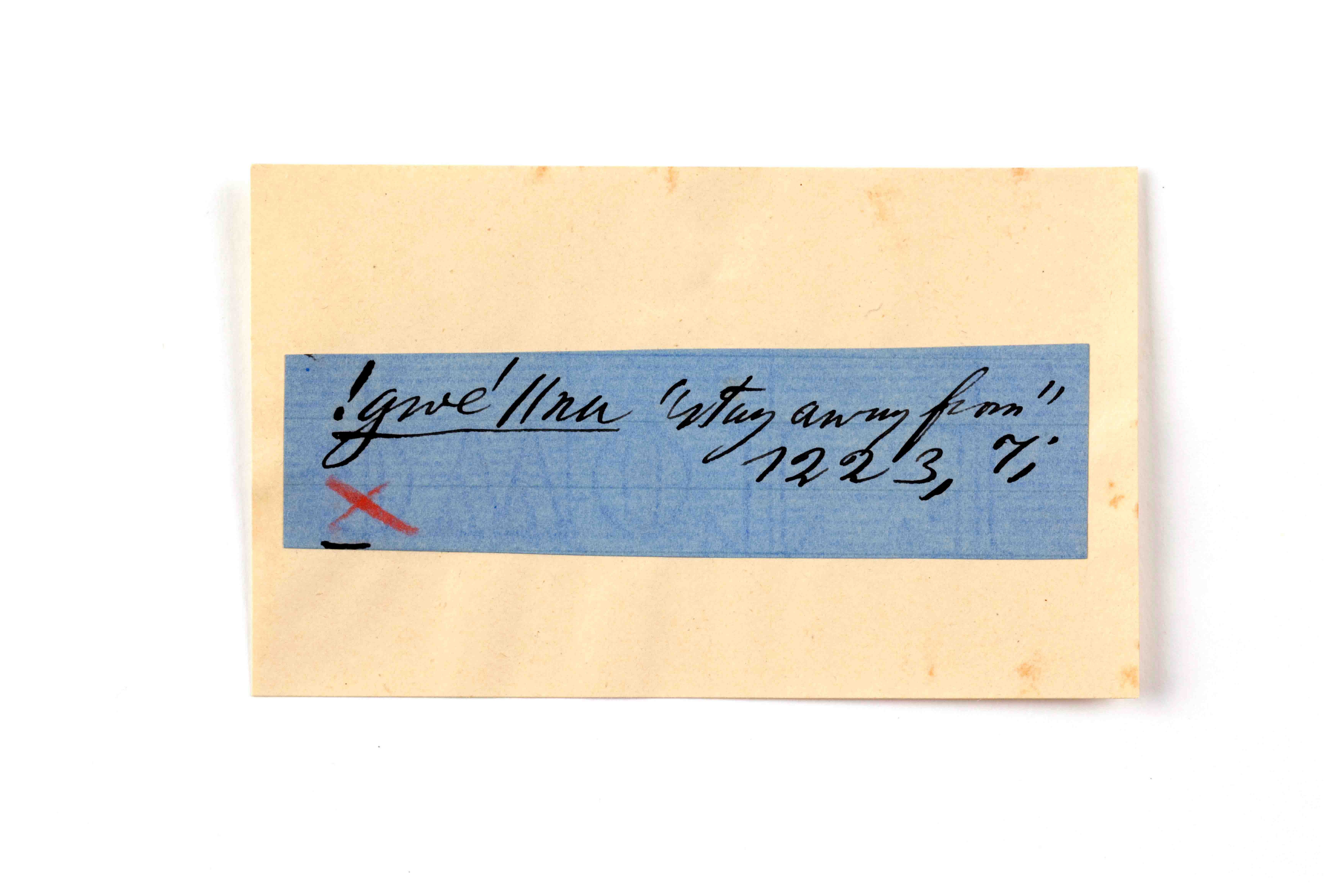 ink on blue paper glued on card