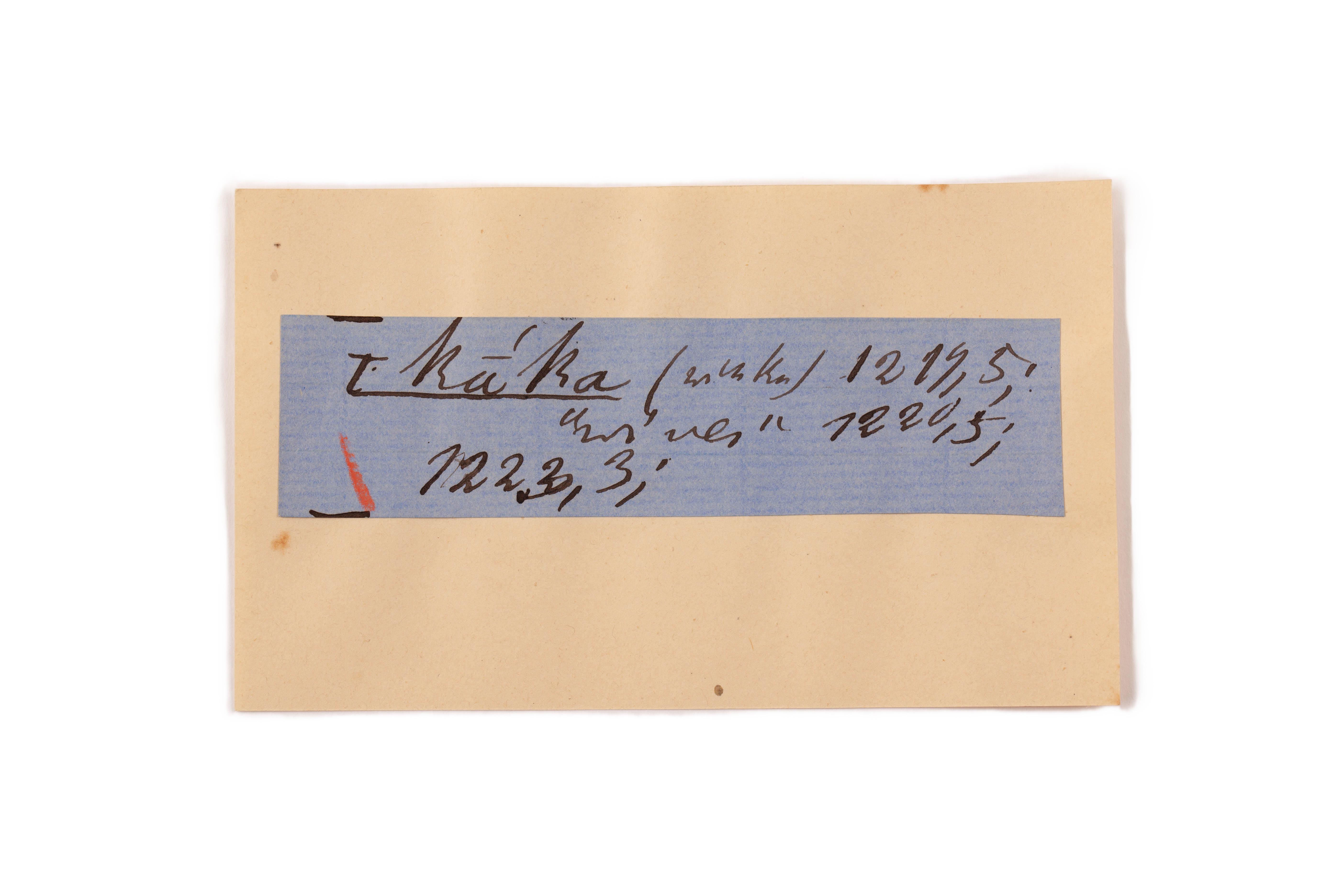 ink on blue paper glued on card