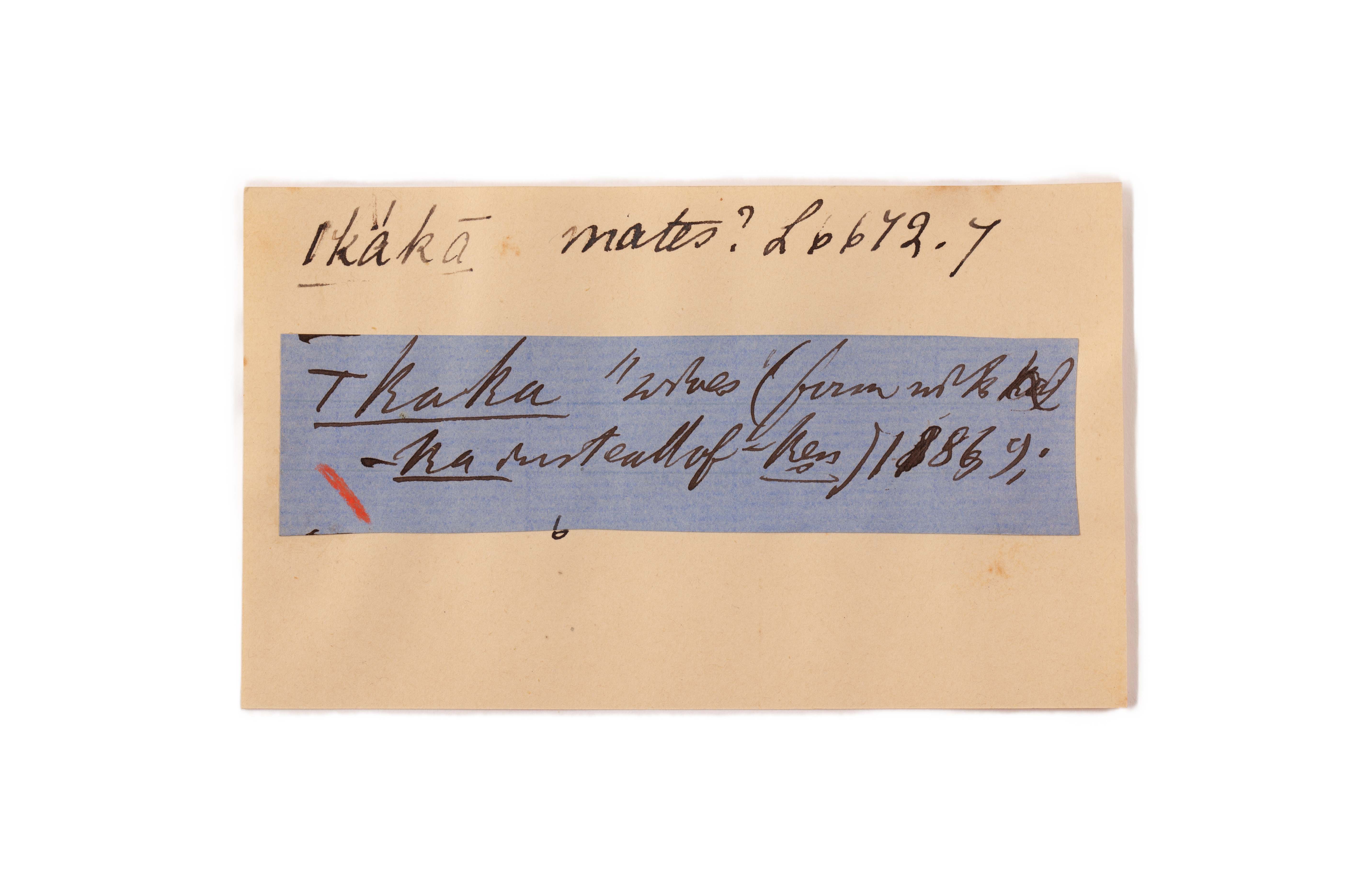 ink on blue paper glued on card