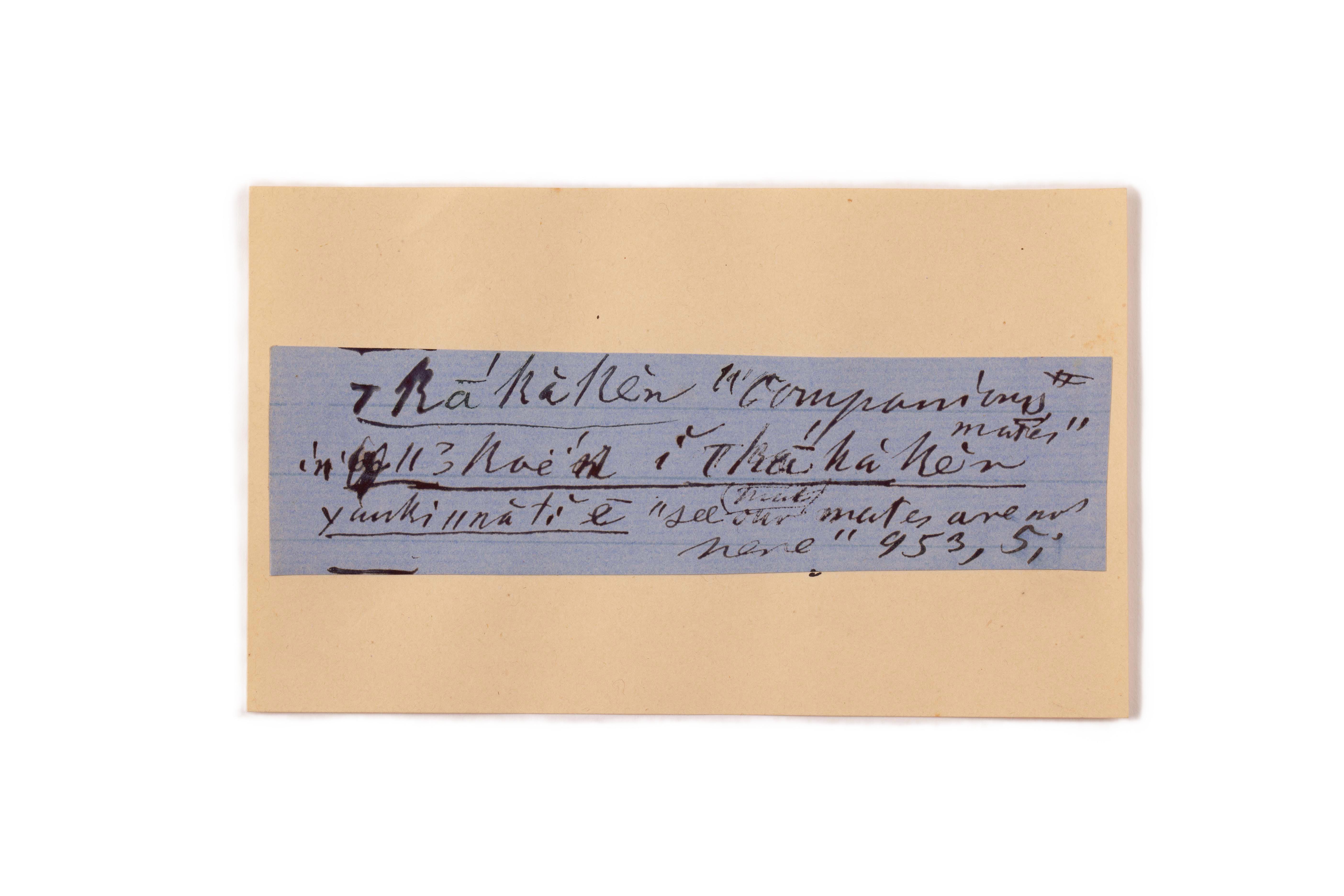 ink on blue paper glued on card